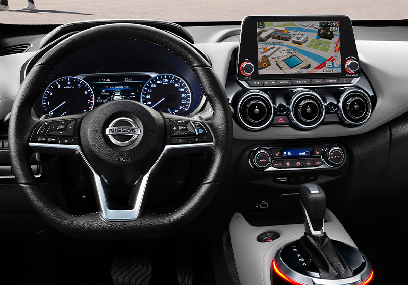 L’interno della Juke è stato progettato per offrire un ambiente confortevole e funzionale. I sedili sportivi offrono un buon supporto, mentre il design del cruscotto è moderno e intuitivo. Nonostante le dimensioni compatte del veicolo, lo spazio interno è sorprendentemente generoso, con una capacità del bagagliaio di 422 litri, espandibile fino a 1.305 litri abbattendo i sedili posteriori.