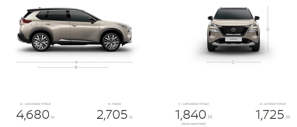 Il Nissan X-Trail offre dimensioni generose, che si traducono in spazio e comfort a bordo. La lunghezza è di 468 cm, la larghezza misura 184 cm, mentre l’altezza è pari a 172 cm. La configurazione a sette posti lo rende ideale per le famiglie numerose o per chi ha esigenze di trasporto elevate. Il bagagliaio varia da 485 litri a oltre 1300 litri, a seconda della configurazione dei sedili, offrendo una straordinaria flessibilità d’uso. Ogni dettaglio è pensato per rendere l’abitacolo funzionale e adatto a ogni tipo di esigenza, sia quotidiana che professionale.